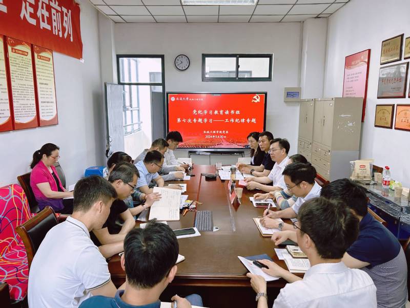 自5月8日以来,机械工程学院党委举办党纪学习教育专题读书班,连续组织了八次专题学习。5月30日,校党委常委、副校长施佺巡学旁听学院党纪学习教育第七次、第八次专题读书班学习暨结班式会议并讲话。