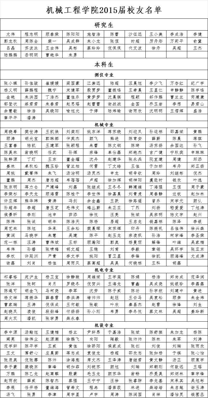 机械工程学院2015届校友名单