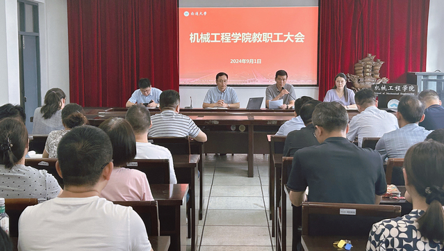 9月1日下午,机械工程学院召开新学期教职工大会,学习贯彻校党委四届三次全会精神,部署新学期学院重点工作。