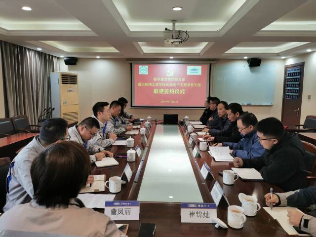 座谈会上,南通振华重型装备制造有限公司副书记赵佳能介绍了企业的发展历程、主营业务,在党务工作、人才培养方面取得的成绩,希望双方在良好合作的基础上,进一步传承和发扬,促进校企在人才培养上的优势互补和资源共享。机械工程学院党委书记张志刚对南通振华重型装备制造有限公司所取得的成绩表达了赞许,对公司第四党支部给予学院机械电子工程系开展党建工作的支持表示感谢。他希望双方通过党员互动、定期走访等途径,开展党建引领下的互学互访活动,积极推进党建与业务深度融合,以高质量党建促进高质量发展。机械电子工程系党支部书记王恒回顾了近年来双方在人才培养、项目申报、成果获奖等方面取得的成果,并与振华重装第四党支部书记王风阳签订了党支部联建协议。双方围绕党的二十届三中全会精神学习、产教融合与新质生产力等内容开展了广泛深入交流。与会人员现场参观了企业钢结构智能制造车间和5000吨全回转打捞船、海上升压站等重大装备。