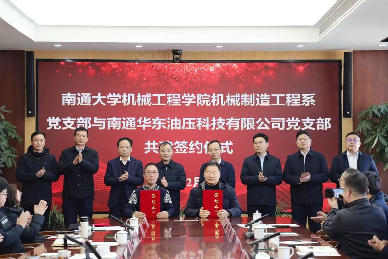 活动第二阶段校地共建由机械工程学院党委书记张志刚主持。机械工程学院院长张福豹介绍了学院基本情况、学科优势及科研成果,白蒲镇党委副书记、镇长储凯详细阐述了白蒲镇的产业基础、发展规划与合作需求。南通华东油压科技有限公司、江苏力源金河铸造有限公司等企业代表分别介绍了企业基本情况。双方围绕校企产学研、人才培养等方面的合作展望进行了深入交流。机械工程学院党委与白蒲镇党委、机械工程学院机械制造工程系党支部与南通华东油压科技有限公司党支部现场签署共建协议,为校地资源共享、优势互补奠定了坚实基础。