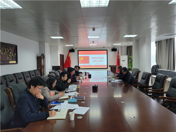 3月19日上午,管理学院召开学院党委理论学习中心组专题学习会,专题学习、研究、落实信思金书记和张清杰校长在学校工作布置会上的讲话精神,学院领导班子成员、党委委员参加,会议由学院党委书记童泽望主持。