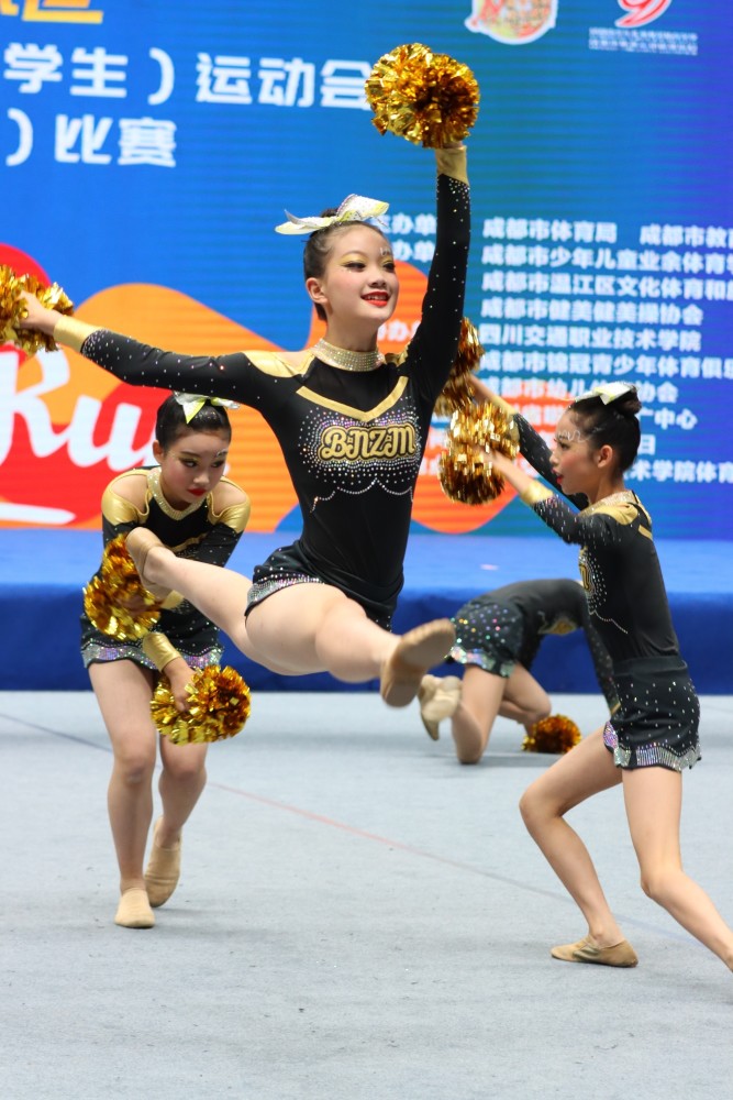 赛场上,来自成都市各个区的优秀代表队为本次比赛呈现了一场精彩绝伦的视觉盛宴,在激情的音乐的节奏下,运动员们活力四射、动感有力,展示了健美操、啦啦操的活力和自信,在比赛风格上,编排新颖,队形多样,孩子们用他们整齐规范的动作、专业的认真的态度和积极向上的精神面貌,征服了赛场每一位裁判和观众,让我们看到了健康、阳光、向上的新时代少年。