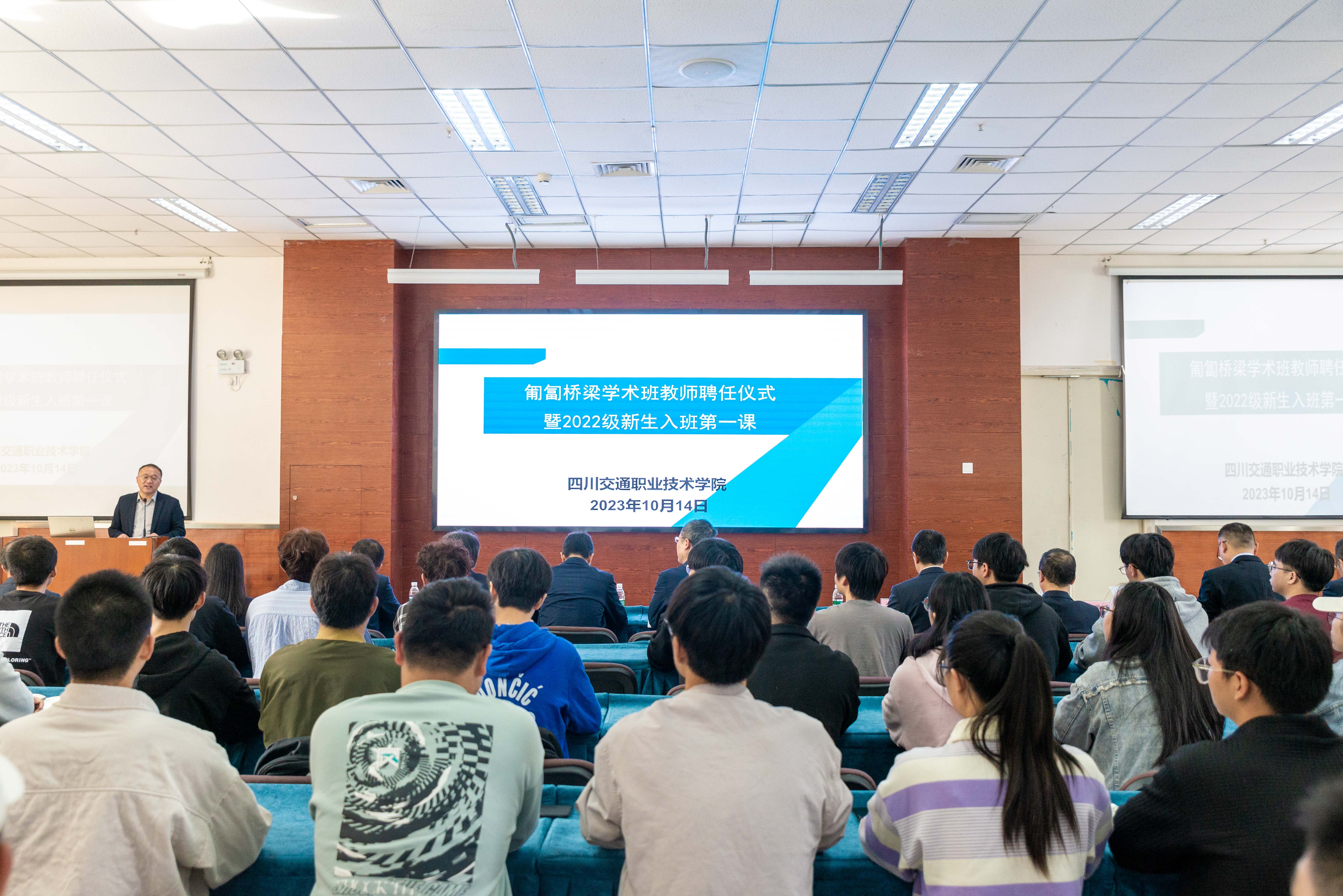 10月14日上午,学院匍匐桥梁学术班教师聘任仪式暨2022级新生入班第一课在明德楼A301举行。学院党委书记冯书明、党委副书记、院长蒋永林、四川省公路规划勘察设计研究院有限公司党委书记、董事长罗玉宏出席活动并讲话,11位特聘专家教师和道路与桥梁工程系领导、名师工作室成员、匍匐班2021、2022级学员参加本次活动。