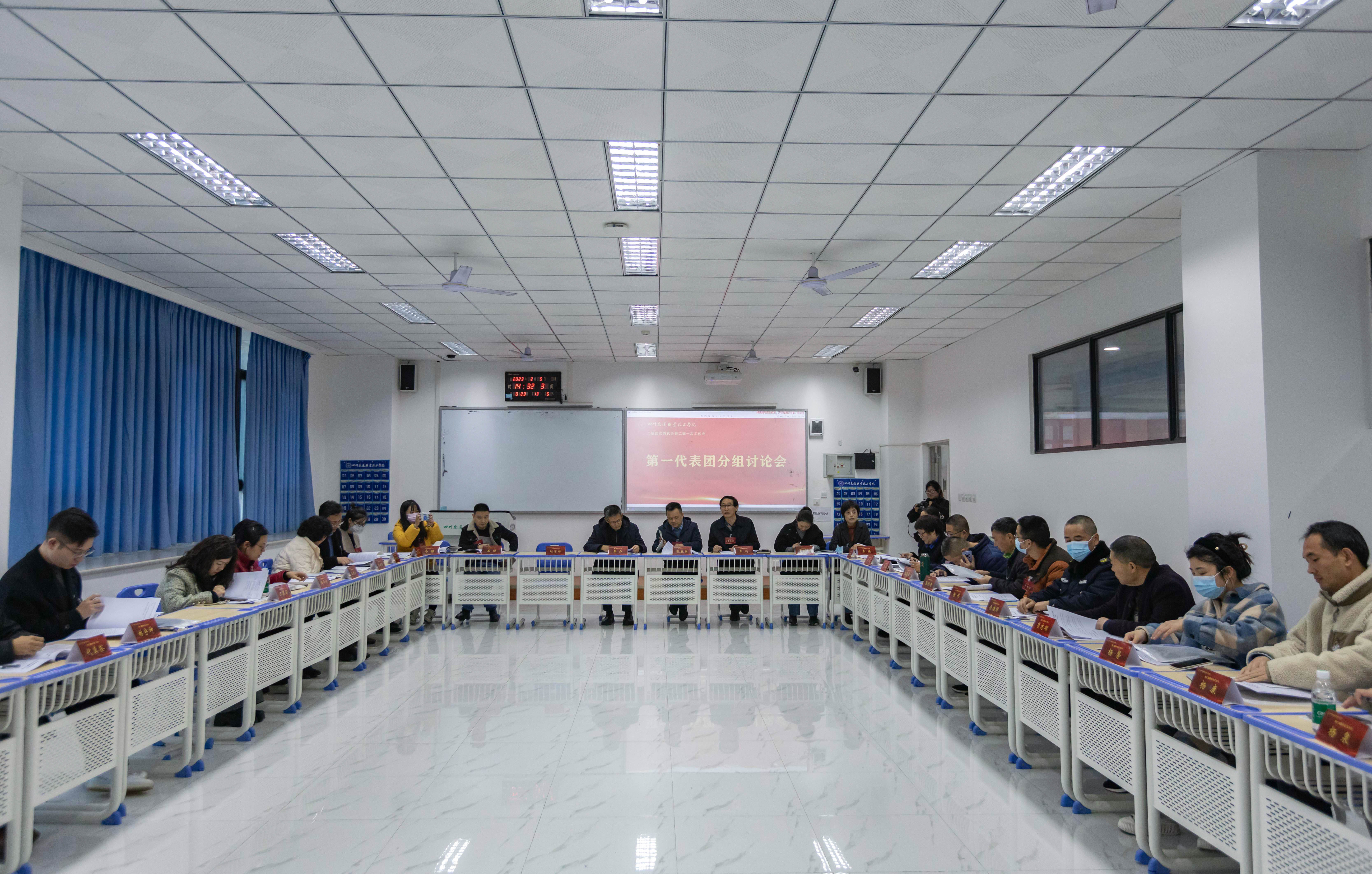 各代表团分组对两项讨论稿开展了热烈的讨论,积极对两项讨论稿提出意见和建议。各代表团召集人就代表们提出的意见和建议向大会主席团进行了汇报。随后,全体代表审议并表决通过了《四川交通职业技术学院教职工代表大会实施细则》、《四川交通职业技术学院住房公积金差异化比例缴存方案》。