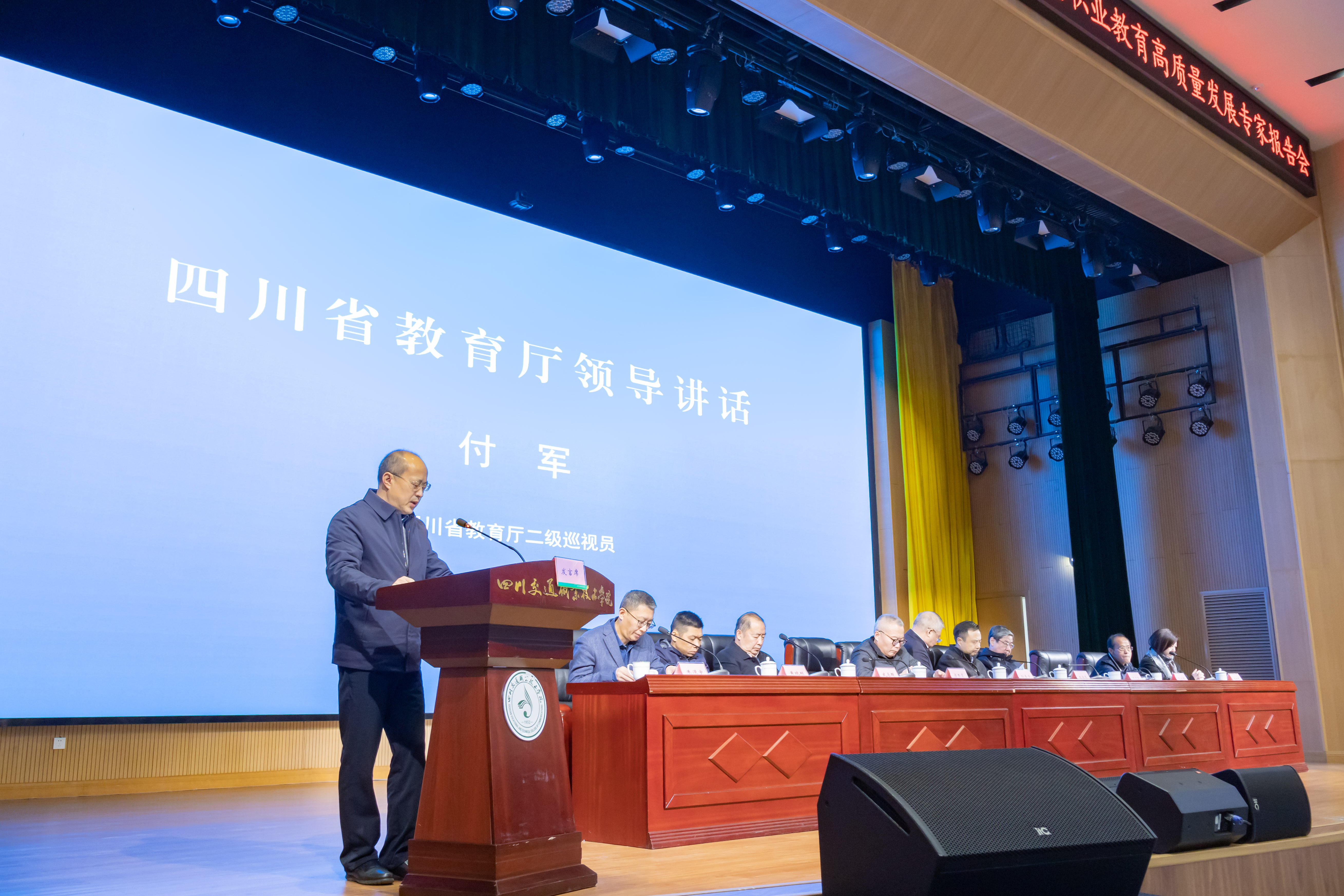 12月20日上午,四川省省级“双高计划”中期绩效评价反馈会暨职业教育高质量发展专家报告会在我院举行。省交通运输厅二级巡视员蒲继生出席会议并致辞。