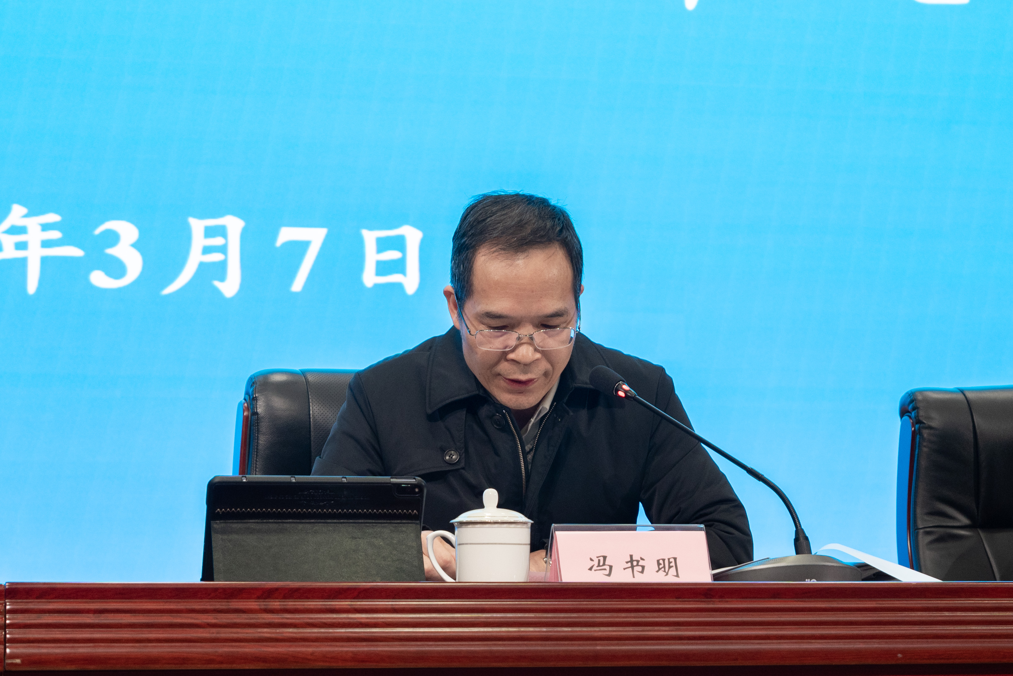 学院党委书记冯书明代表学院领导班子重点围绕贯彻落实习近平总书记重要指示批示精神等7个方面作了2023年度学院领导班子述职,专题报告了2023年度选人用人工作情况,并就抓基层党建工作和2023年履职情况作口头述职。学院领导班子其他成员进行书面述职述廉。