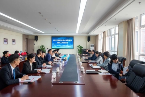 参观结束后,新津区委常委、组织部部长黄刚,新津区人社局局长彭科,格力电器(成都)有限公司、格力钛新能源有限公司、新筑路桥机械股份有限公司、园区管委会、教育局、产教办等部门有关人员与学院一行进行座谈。座谈会就毕业生就业、市域产教联合体建设、产业工人培训等方面进行广泛交流,形成进一步加强人员往来、推进合作的意向。