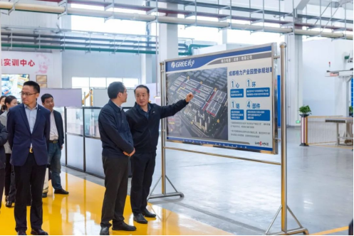 在新津区人社局、产业园管委会和企业负责人介绍下,学院一行参观了园区两家代表性企业。在格力电器(成都)有限公司滚筒车间和总装车间,近距离了解公司智能生产线、总装精益生产线。在格力钛新能源有限公司格力钛展厅,了解了钛酸锂电池的应用场景,乘坐公司出产的铛铛车参观了整车制造生产线。