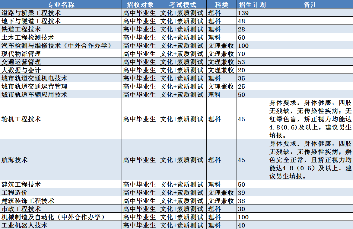 2023年四川交通职业技术学院单独招生计划2035名。其中:普高类1015名,中职类1020名。招生专业、计划、收费标准均以四川省教育考试院公布为准。
