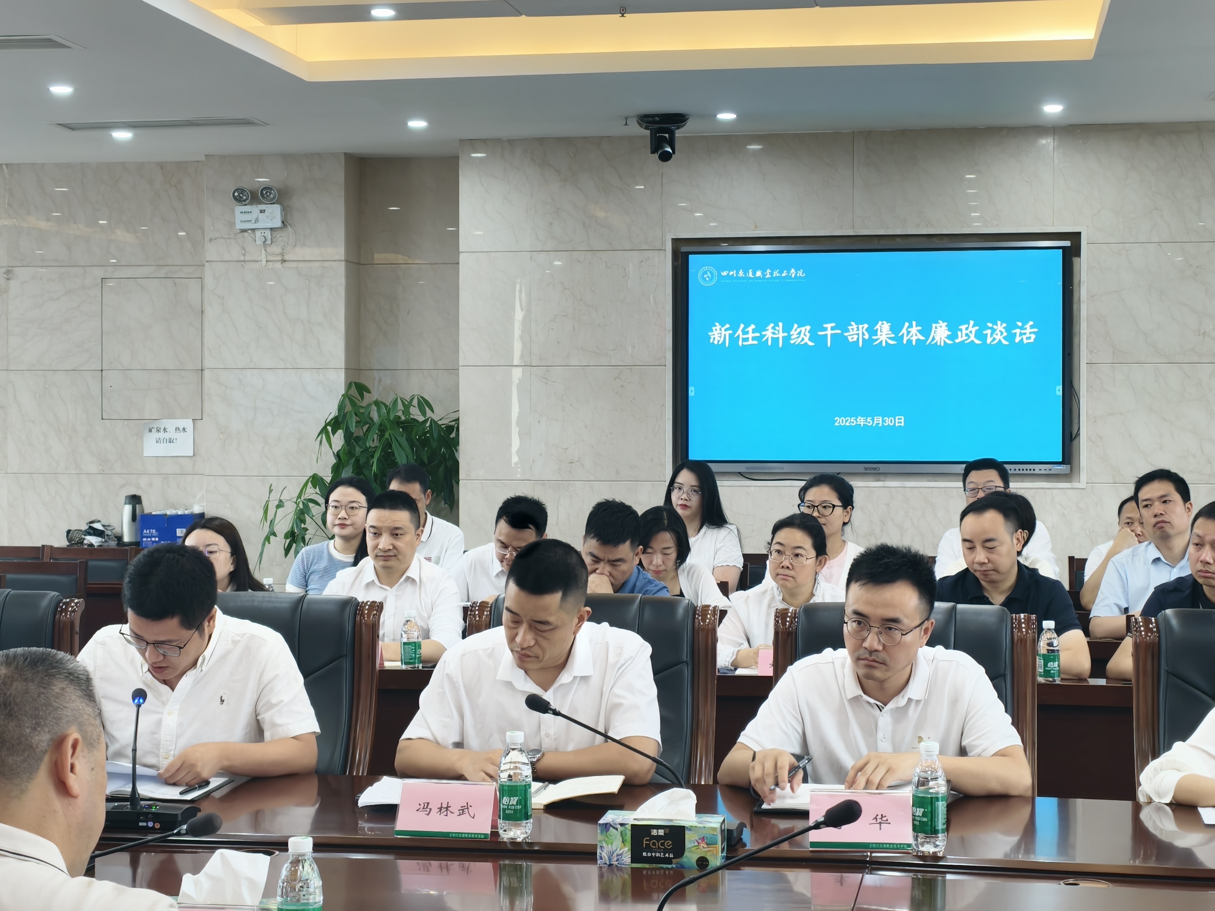 为落实全面从严治党要求,结合正在开展的深入贯彻中央八项规定精神学习教育和高校领域突出问题系统整治工作,5月30日,学院纪委对近三年新任科级干部共计30余人开展了集体廉政谈话,引导年轻干部不断强化底线思维、树牢廉洁意识,始终以高的标准、严的纪律、实的作风要求自己,扣好廉洁从政“第一粒扣子”。