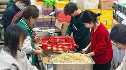 为进一步弘扬敬老爱老的美德,让同学们认识劳动对社会价值实现的重要意义,班级组织前往雨花斋养老院开展志愿服务,在劳动中感受服务乐趣。从食材择洗切配到分餐送餐服务,同学们全环节参与养老院餐食供应工作。筹备阶段,同学们分组细化岗位职责,实践过程中,同学们以严谨细致的工作作风完成备餐任务,以真情服务的关怀与老人暖心互动,让老人切实感受到“舌尖上的温度”。两次养老院之行既锤炼了青年劳动技能、深化了团队协作理念,更通过志愿服务为“尊老敬老、代际和谐”的文明风尚注入青春正能量。