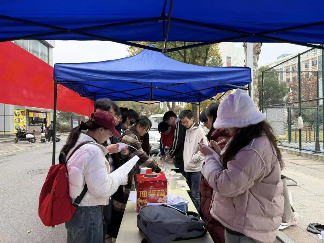 活动伊始,管理学院学生会权益部积极落实联合工作安排,于12月2日率先完成活动抽奖箱的设计与制作,并与资环学院协同完成6顶帐篷的搬运与场地搭建,为活动顺利开展提供了有力保障。