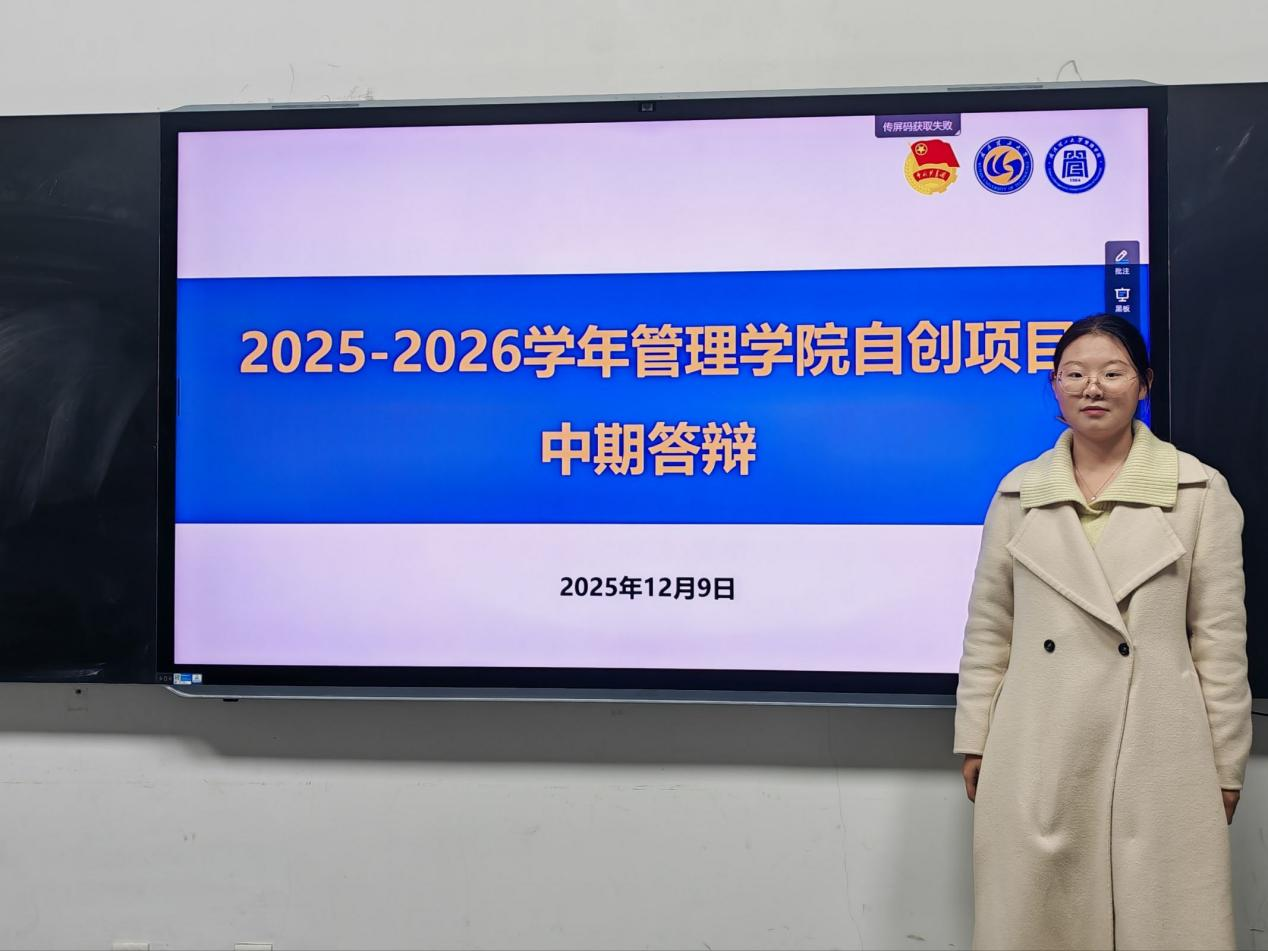 为培育优质的学生创新项目、推进学院创新创业教育事业高质量发展,12月9日,2025-2026学年管理学院自创项目中期答辩在学院100教室顺利开展。此次答辩由曹勤伟老师、王宏宇老师担任评委,他们对参与答辩的队伍给予了精心指导。