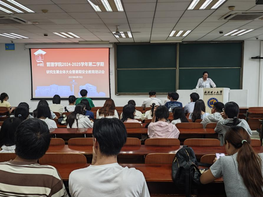 为推动思想政治教育与安全法治教育常态化开展,6月19日中午,管理学院分年级开展六月份第二次研学讲堂暨全体研究生大会,研究生辅导员曾珠、韩续冰、吴雨婷及全体研究生参与此次活动。辅导员按要求进行人员清查,并于会后一一核对请假情况,及时了解学生的在校情况及日常动态。