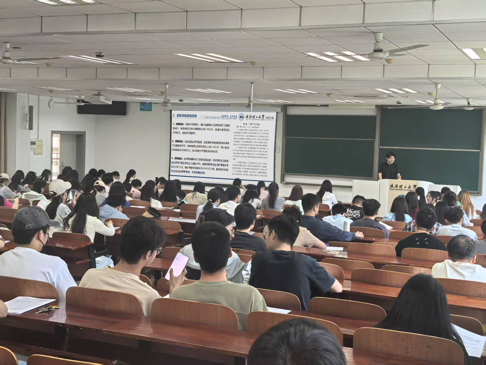 面向24级研究生,结合《研究生手册》相关规定,辅导员韩续冰宣贯了助管、助教、住研津贴发放政策及规范。为应对梅雨天气,韩老师围绕交通安全、自我防护、遇险救援、防疫防病等方面开展汛期安全教育。结合真实案例,韩老师分享了防诈反诈知识,要求大家莫贪小便宜、养成好习惯,努力提升防范意识。期末考试在即,韩老师结合《研究生手册》讲解了考试作弊行为与作弊处罚规定,要求所有同学务必做到积极备考与诚信应考。